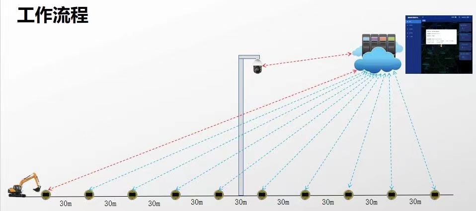 “智能地釘”異常施工行為預警及施工破壞報警: